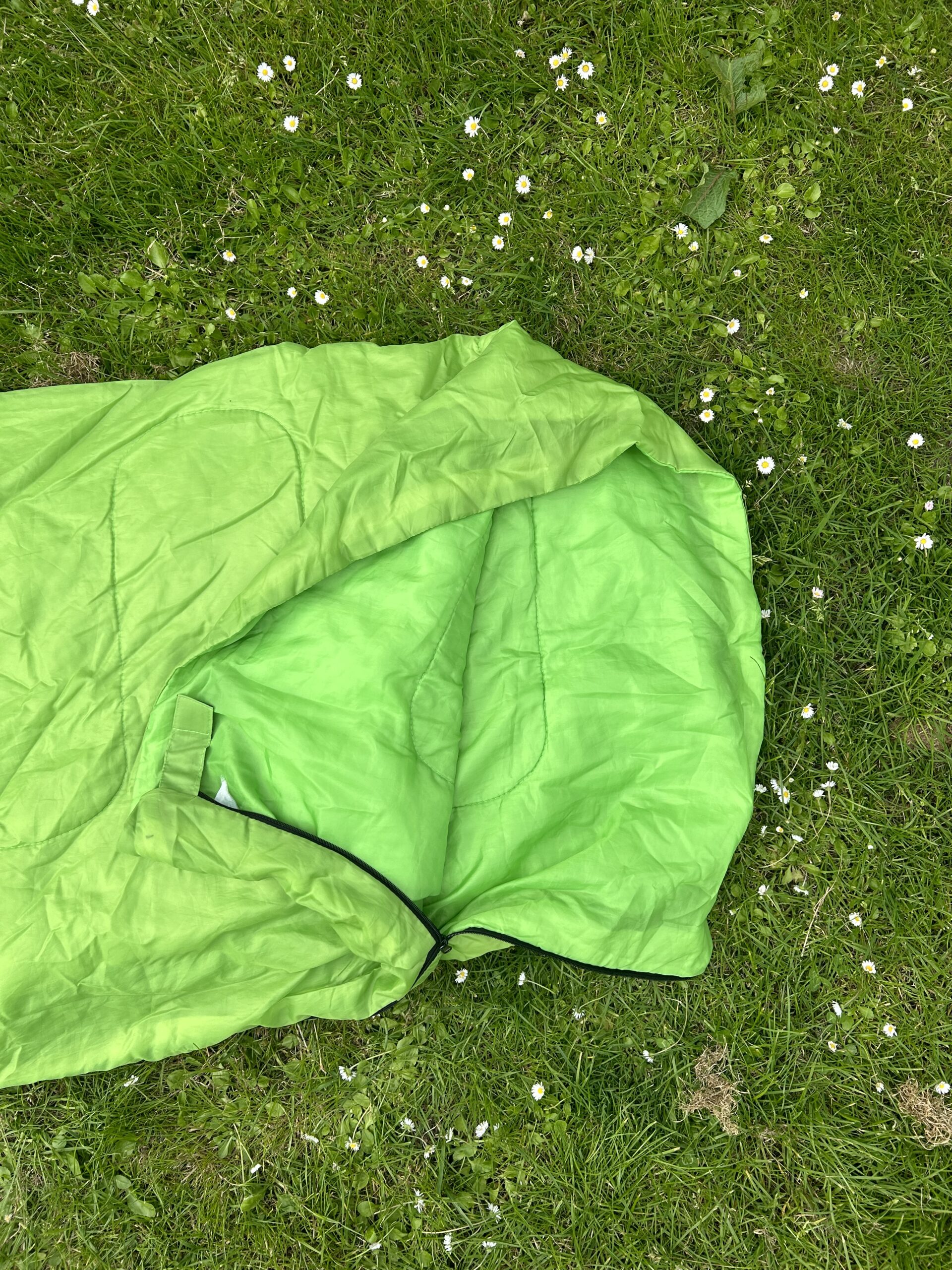 Een simpele en dunne slaapzak, geschikt voor binnen of zomerdagen in de tent.