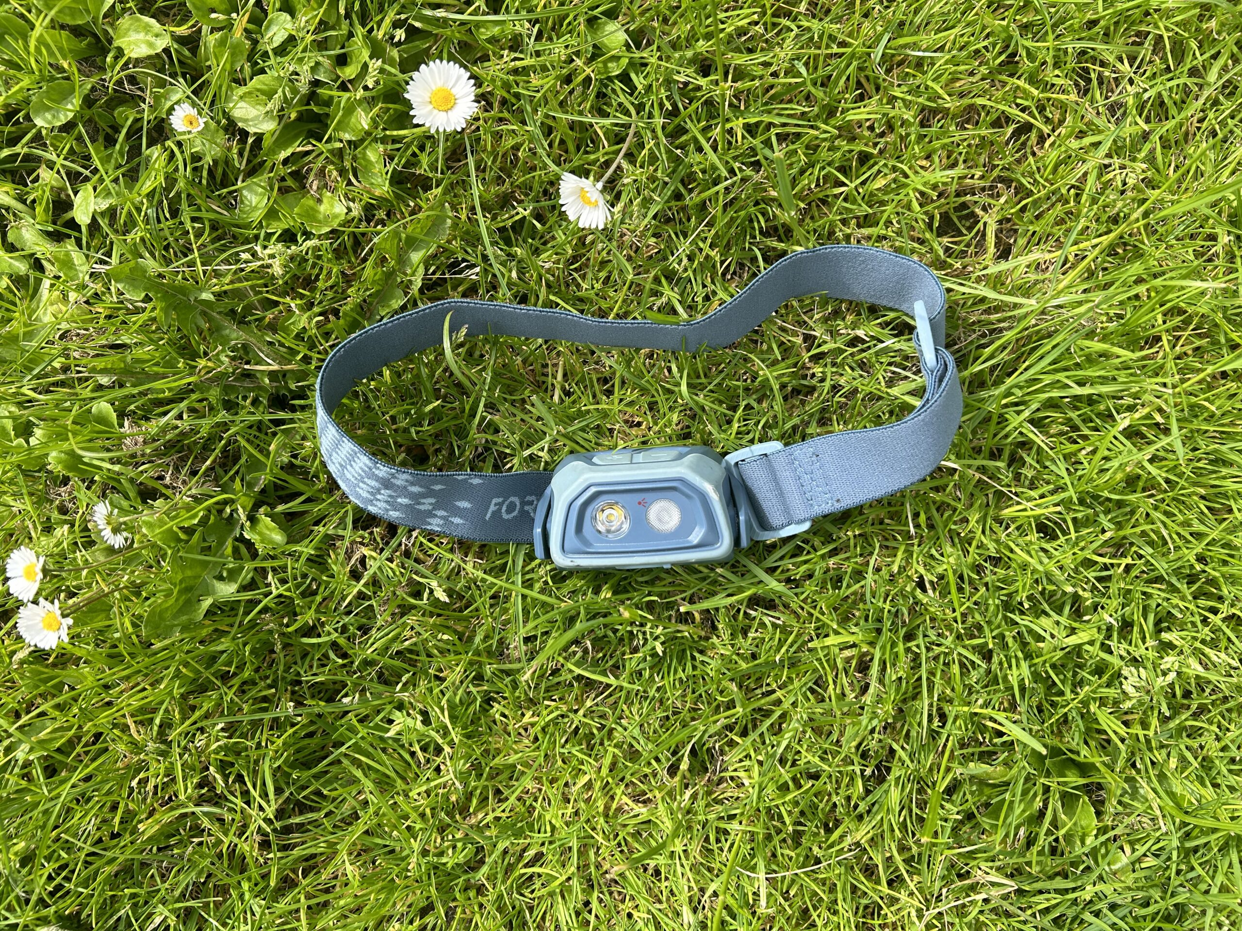 Hoofdlamp met rode en witte LED lichten op verschillende sterktes, maximaal 300 lumen. Met een keer opladen kun je de hoofdlamp in lage of medium lichtsterkte dagenlang gebruiken.