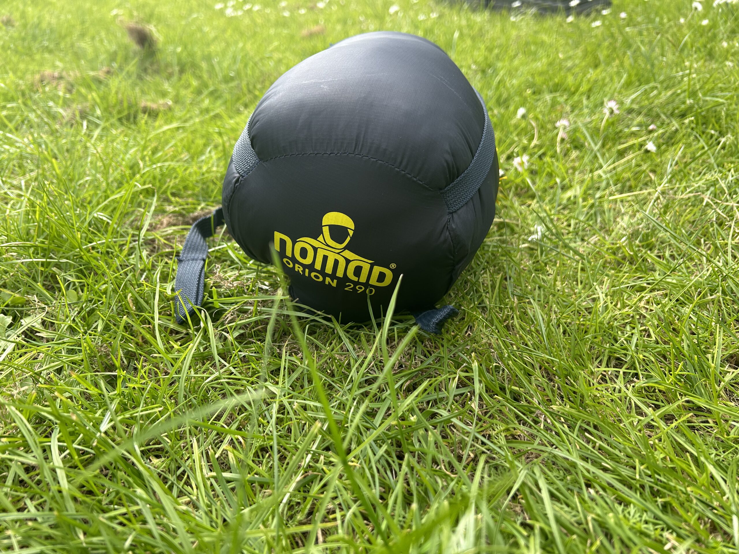 Nomad Orion 290. Een warme en ultra-compacte dons slaapzak met comforttemperatuur voor mannen van 2°C , voor vrouwen van 7°C en een limiettemperatuur van -12°C.